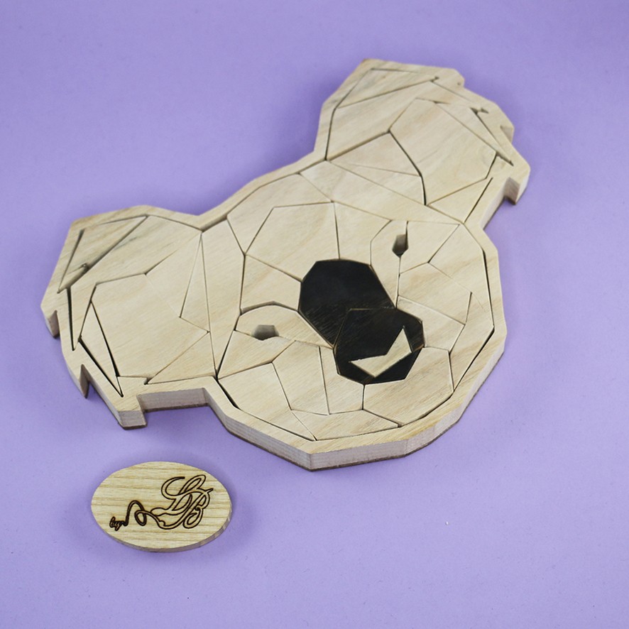 Puzzle Koala Géométrique en Bois – Casse-tête Artisanal Unique