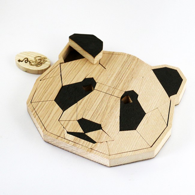 Puzzle - Casse-tête PANDA géométrique en bois naturel, fait main