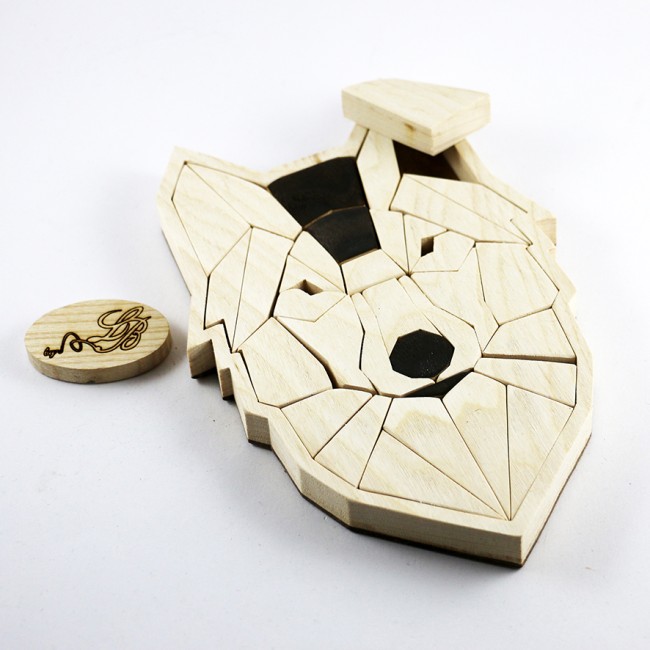 Puzzle - Casse-tête LOUP géométrique en bois naturel, fait main