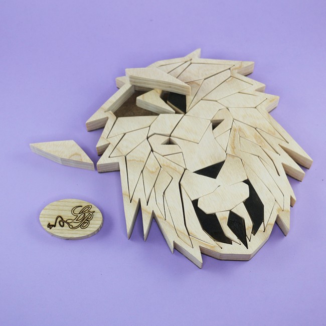 Puzzle - Casse-tête LION géométrique en bois naturel, fait main