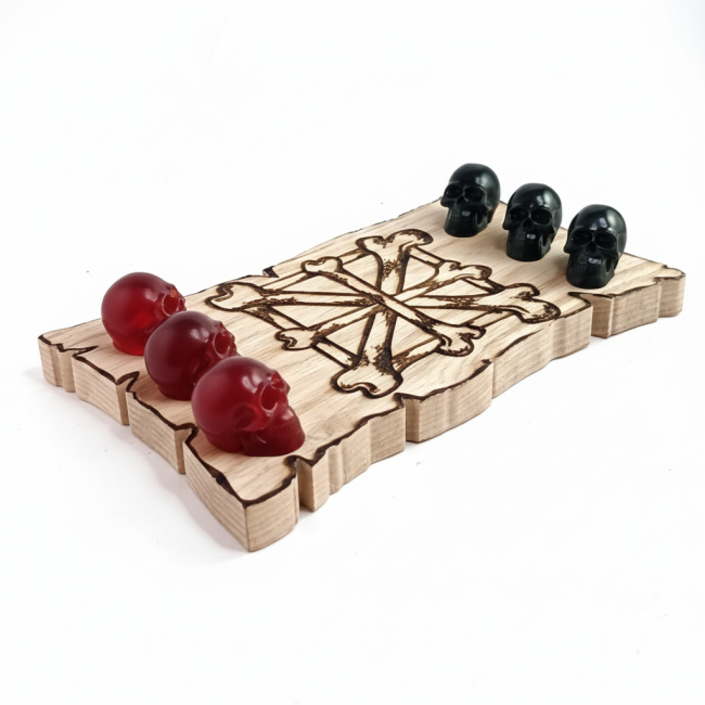 La Marelle de 3 Pirate - en Chêne Fait Main avec Crânes en Résine