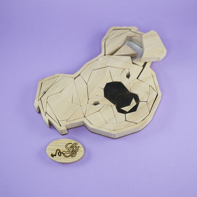 Puzzle - Casse-tête KOALA géométrique en bois naturel, fait main